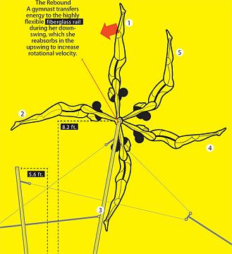 This upward force enables the gymnast to go up again.
