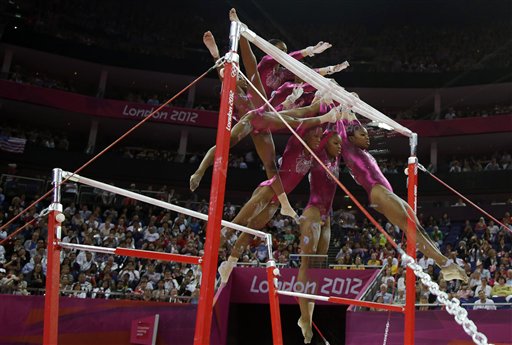 Gymnast on the even bars during the 2012 Olympic in London Illustration of the Centripetal force