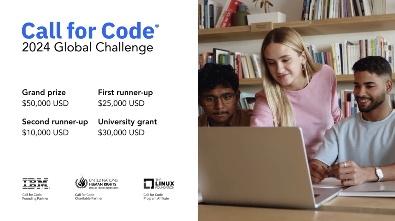 Be a part of a new era in responsible AI. For the 2024 Call for Code Global Challenge, we’re calling on students, developers, and problem-solvers from universities and companies around the world to build innovative AI tech solutions with IBM watsonx that address specific challenges of equitable access to essential needs. Help show the world that AI can be trusted and used responsibly.