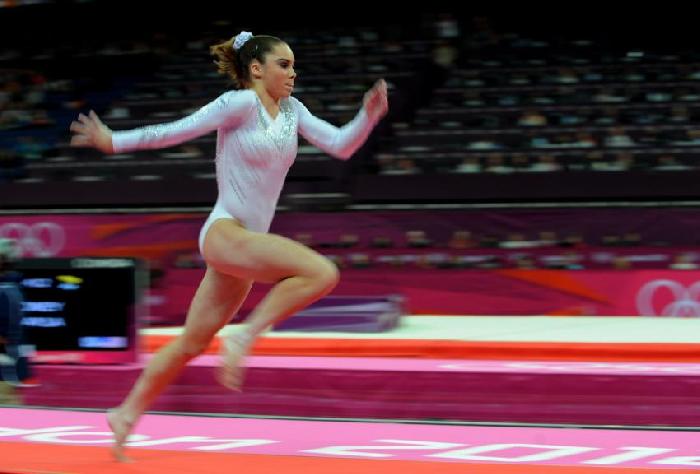 Gymnast accelerating to the vault in Olympics 2012 in London